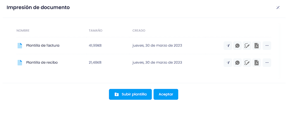 Se abrirá la ventana de impresión de documentos, desde aquí aparecerán aparecerán algunos documentos predeterminados del sistema, es posible utilizar estos documentos y descargarlos para modificarlos o ver cómo están realizados.