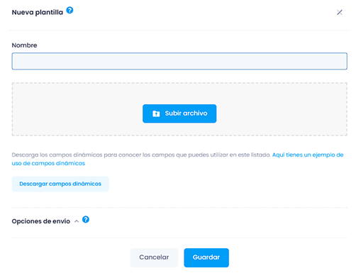 Sigue los siguiente pasos para confeccionar la plantilla personalizada con los campos dinámicos y subirla a la aplicación: