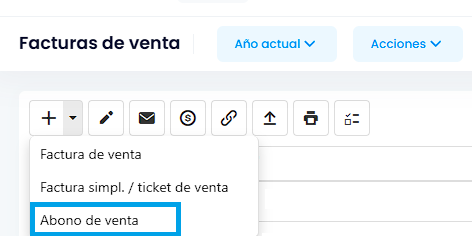 - Haz clic en el desplegable del botón ‘+’ y selecciona Abono de ventas.